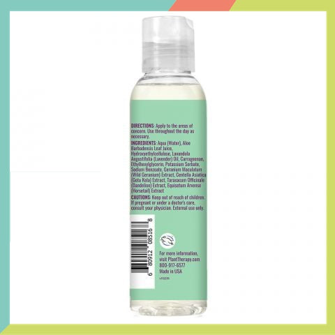 Water/Aqua, Aloe Barbadensis Leaf Juice, Hydroxyethylcellulose, Lavandula Angustifolia (Lavender) Oil, Carrageenan, Ethylhexylglycerin, Potassium Sorbate, Sodium Benzoate, Geranium Maculatum (Wild Geranium) Extract, Centella Asiatica (Gotu Kola) Extract, Taraxacum Officinale (Dandelion) Extract, Equisetum Arvense (Horsetail) Extract